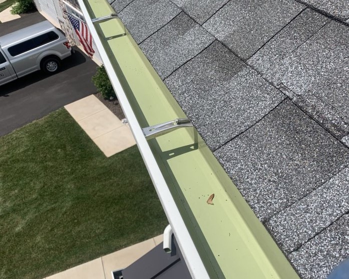 We can safely get close enough to the gutter to clean the outside of the gutter during a house wash, and with a pressure washing rod that loops 180, we can easily blow out the grime and clean it up later on the grass below. We would then go up to the gutter and peak in if the gutter was totally empty or not and drains well.